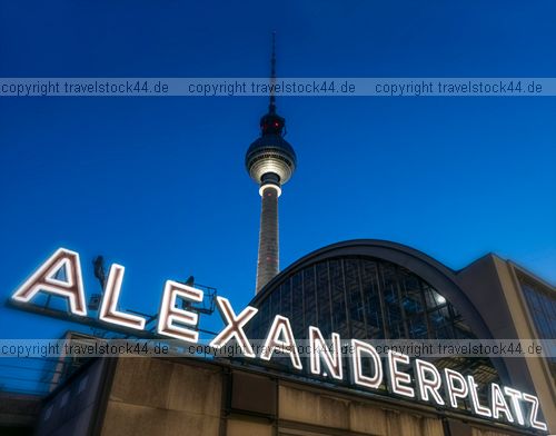 Berlin, Color Image, Communications Capital Cities, Famous Place, Geography, German Culture, Germany, High Section, Horizontal, ILLUMINATED, Neon, Night, No People, Part Of, Photography, Reise, Television Tower - Berlin, architecture, clear sky, dusk, illumination, low angle view, metro, outdoors, railroad station, railway station, sign, symbol, tower, traffic, travel destinations, twilight, Travel, Tourism, Holyday, Sightseeing |