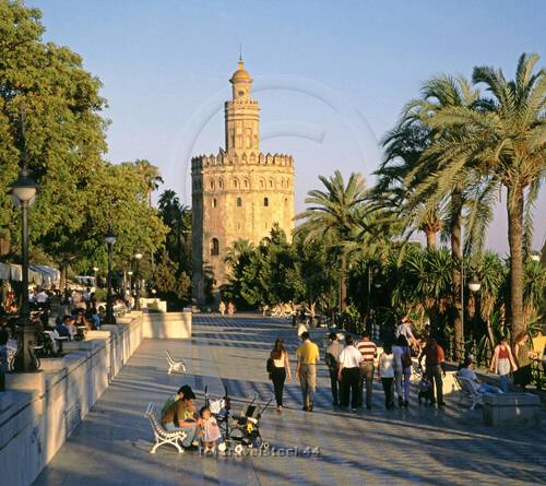 Spain, Andalucia, Sevilla, Torre del Oro, promenade, people. |