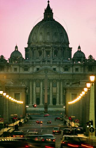 Abend, Architektur, Conciliazione, Dom, Dome, Italy, Petersdom, Vatikan, Verkehr, architecture, capital, city, cityscape, della, destination, dusk, evening, illumination, landmark, night, religion, rome, sunset, tourism, traffic, travel, vatican, via |