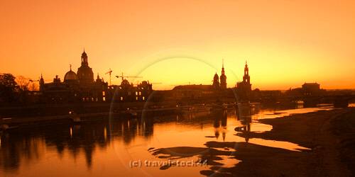 Dresden, panoramic view from bridge over river Elbe at sunset, Fraunenkirche, Hofkirche, Semper opera house, sunset | Dresden Schasen elbe bei Sonnenuntergang |
