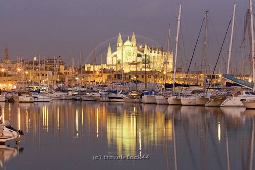 Balearen, Beleuchtung, Kalendermotiv, Kathedrale, Kirche, Mallorca, Nacht, Reisen, Spain, architecture, blue, boat, boats, cathedral, church, dawn, europe, holyday, illumination, kathedral, katholic, la, marina, port, postcard, reflection, religion, romantic, sailing, seo, sunset, travel, travelstock44.de |